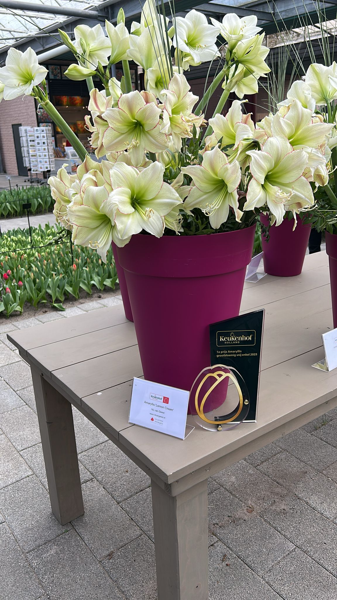 During the annual Amaryllis meeting at Keukenhof, the expert jury awarded first prize to amaryllis Lemon Cream in the Large-flowered Cut Flower category. The expert jury described the flower as ‘unique in its colouring with the red edge around the petals’. We are extremely proud of this result.