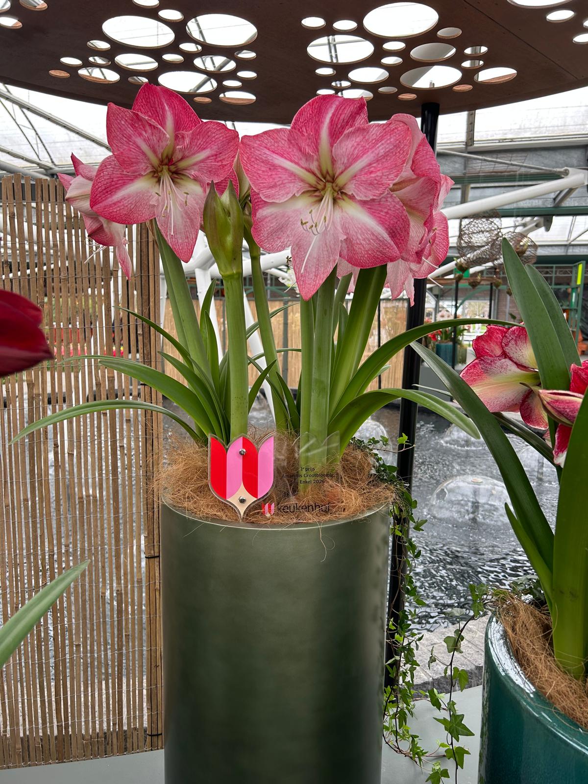 Net als in 2025 werd de eerste prijs Amaryllis Grootbloemig Snij Enkel toegekend aan Amarylliskwekerij NL Van Geest uit ‘s-Gravenzande. De ‘Pink Amazone’ loopt prachtig over in kleur en is een bijzonder elegante amaryllis volgens de jury. Ook de “Blossom Grandise” werd beloond met een eerste prijs voor de beste grootbloemige enkel op pot.
